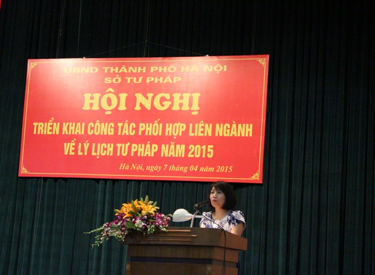 Thực hiện Chỉ thị số 02/CT-BTP ngày 09/3/2015 của Bộ trưởng Bộ Tư pháp về việc tăng cường xây dựng, quản lý, sử dụng và khai thác Cơ sở dữ liệu lý lịch tư pháp, Kế hoạch số 17/KH-UBND ngày 13/01/2015 của UBND thành phố Hà Nội về trọng tâm công tác tư pháp trên địa bàn thành phố Hà Nội năm 2015, ngày 07/4/2015, Sở Tư pháp thành phố Hà Nội đã tổ chức Hội nghị triển khai công tác phối hợp liên ngành về lý lịch tư pháp. Tham dự Hội nghị có đại diện Lãnh đạo Trung tâm Lý lịch tư pháp quốc gia, Lãnh đạo Tòa án, Viện Kiểm sát, Công an, Thi hành án dân sự Thành phố, đại diện lãnh đạo Tòa án, Viện Kiểm sát, Công an, Thi hành án dân sự các quận, huyện trên địa bàn thành phố và cán bộ làm công tác phối hợp cung cấp, tra cứu, xác minh thông tin của các cơ quan Tòa án, Viện Kiểm sát, Công an, Thi hành án dân sự Thành phố và các quận, huyện. Đồng chí Phạm Thanh Cao, Phó Giám đốc Sở Tư pháp chủ trì Hội nghị.