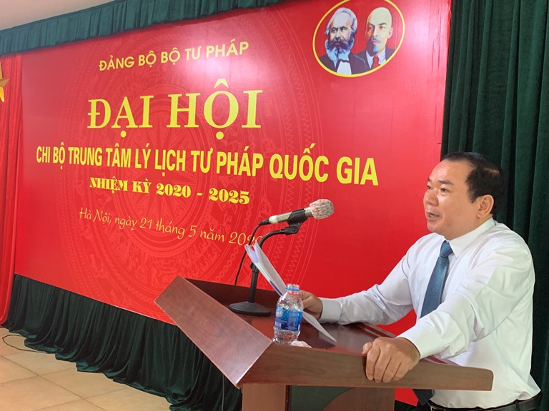 Tại Đại hội, đồng chí Hoàng Quốc Hùng, Bí thư Chi bộ, Giám đốc Trung tâm Lý lịch tư pháp quốc gia thay mặt Đoàn Chủ tịch trình bày dự thảo Báo cáo chính trị và Báo cáo kiểm điểm của Chi ủy Chi bộ Trung tâm Lý lịch tư pháp quốc gia nhiệm kỳ 2015-2020. Trong nhiệm kỳ vừa qua Chi bộ Trung tâm Lý lịch tư pháp quốc gia đã lãnh đạo thực hiện nhiệm vụ chính trị, phối hợp với tập thể Lãnh đạo Trung tâm lãnh đạo, chỉ đạo đảng viên, công chức, viên chức và người lao động hoàn thành tốt nhiệm vụ chính trị được giao. Chi bộ đã nghiêm túc triển khai, quán triệt thực hiện các Chỉ thị, Nghị quyết của Trung ương, Đảng ủy Khối và Nghị quyết Đại hội Đảng Bộ Tư pháp, đặc biệt là Nghị quyết Đại hội Đảng lần thứ XII.