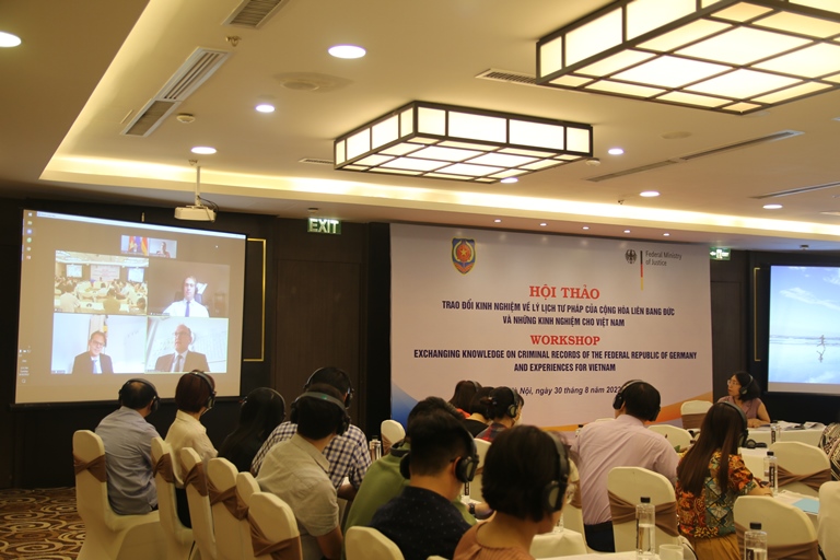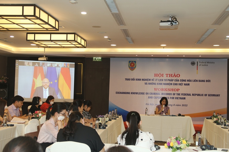 Hội thảo đã được nghe đại diện Trung tâm Lý lịch tư pháp quốc gia giới thiệu Báo cáo tổng quan pháp luật về lý lịch tư pháp và thực tiễn thi hành pháp luật về lý lịch tư pháp tại Việt Nam hiện nay, những kết quả đạt được, hạn chế, bất cập và định hướng phát triển công tác Lý lịch tư pháp trong thời gian tới. Đặc biệt, các đại biểu tham dự Hội thảo đã được nghe các chuyên gia về lý lịch tư pháp của Cộng hòa Liên bang Đức giới thiệu về pháp luật lý lịch tư pháp của Cộng hòa liên bang Đức và thực tiễn quản lý hoạt động này. Các chuyên gia của Cộng hòa liên bang Đức cũng thông tin cho Hội thảo về hệ thống cơ quan quản lý, cơ cấu tổ chức, chức năng, nhiệm vụ của Cơ quan quản lý lý lịch tư pháp; quá trình tiếp nhận và xử lý thông tin, xây dựng Cơ sở dữ liệu lý lịch tư pháp; phương thức cung cấp, trao đổi thông tin lý lịch tư pháp; nội dung, mục đích và đối tượng được cấp của từng loại Phiếu lý lịch tư pháp; vấn đề xóa án tích; thực tiễn ứng dụng công nghệ thông tin trong hoạt động này và vấn đề đảm bảo an toàn, bảo mật dữ liệu lý lịch tư pháp.