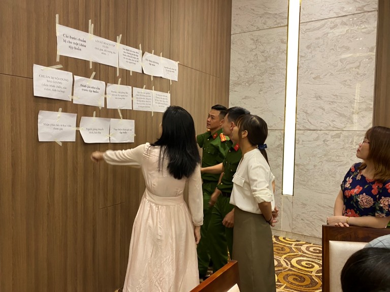 Các đại biểu tham dự tập huấn đã được nghe chuyên gia của Dự án UNDP giới thiệu, hướng dẫn các phương pháp tập huấn, chương trình tập huấn, cách thức tổ chức tập huấn, kế hoạch bài giảng cho mỗi nội dung bài học.... Tại hội nghị tập huấn, cán bộ làm công tác LLTP và cán bộ trại giam, trại tạm giam đã được tham gia, thực hành “Phương pháp tập huấn tích cực” – lấy người học làm trung tâm. Đây là phương pháp tập huấn mới, theo đó giảng viên khuyến khích, để người học chủ động suy nghĩ, tìm hiểu, đánh giá, rút ra nội dung bài học. Tại lớp tập huấn, giảng viên đã hướng dẫn các học viên nhiều phương pháp như: “phá băng” – nhằm tạo sự thân thiết, gần gũi giữa các học viên, hoạt động đóng vai, thảo luận nhóm, thuyết trình, giải câu đố, giảng thử… Trong quá trình tập huấn, giảng viên có thể sử dụng linh hoạt các phương pháp tùy theo điều kiện, hoàn cảnh cụ thể. Lớp tập huấn cũng được chia thành các nhóm nhỏ để trao đổi, thảo luận nhóm, thực hành các phương pháp giảng dạy tích cực. Các phương pháp này đều tạo sự chủ động cho người học, tạo không khí hào hứng, cởi mở và tích cực tham gia thực hành các nội dung đã được hướng dẫn.