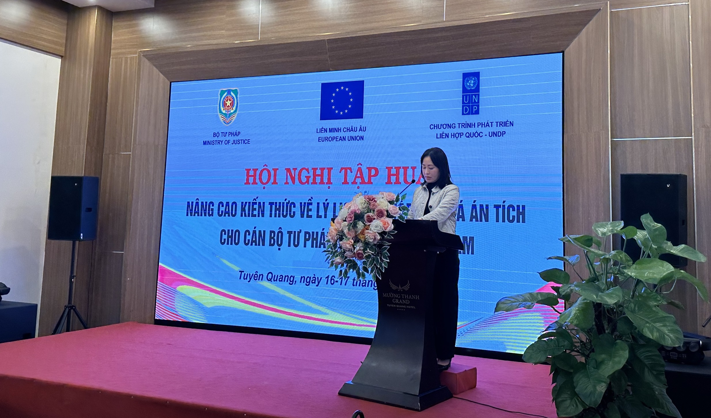 Tại Hội nghị tập huấn, các đại biểu đã được nghe các chuyên gia của Dự án UNDP, các giảng viên hướng dẫn phương pháp tập huấn tích cực lấy người học làm trung tâm, chương trình tập huấn, nội dung cụ thể của từng chuyên đề tập huấn; tham gia các “trò chơi phá băng”, thảo luận nhóm, thuyết trình, hỏi đáp, nghiên cứu các tình huống…Đặc biệt, tại Hội nghị tập huấn, các học viên đã được tham gia trao đổi, chia sẻ nhiều khó khăn, vướng mắc khi xem xét xóa án tích cho người bị kết án với chuyên gia pháp luật hình sự.