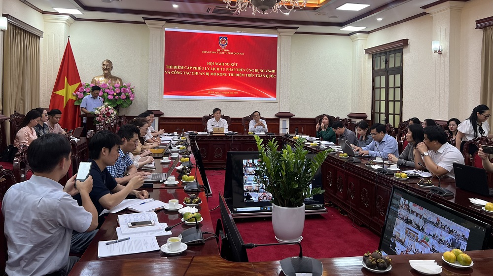 Sau 02 tháng triển khai thực hiện, Bộ Tư pháp tổ chức Hội nghị sơ kết nhằm đánh giá đầy đủ, chính xác, khách quan tình hình thí điểm cấp Phiếu LLTP trên ứng dụng VNeID tại thành phố Hà Nội và tỉnh Thừa Thiên Huế, những kết quả đạt được, những khó khăn, vướng mắc, bài học kinh nghiệm, các điều kiện cần và đủ để có thể cấp Phiếu LLTP trên ứng dụng VNeID để từ đó có thể tham mưu, báo cáo Chính phủ, Thủ tướng Chính phủ xem xét quyết định triển khai thí điểm trên toàn quốc.