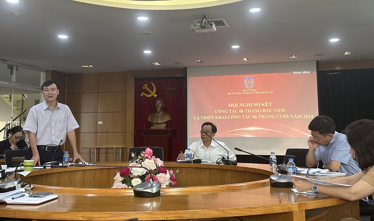 Đồng chí Phạm Quang Đại, Phó Giám đốc Trung tâm đã trình bày báo cáo sơ kết kết quả 06 tháng đầu năm 2024. Theo đó, được sự quan tâm, chỉ đạo sát sao của Ban cán sự đảng Bộ Tư pháp, Lãnh đạo Bộ, Lãnh đạo Trung tâm LLTP quốc gia đã chỉ đạo, điều hành đồng bộ, toàn diện các nhiệm vụ công tác LLTP kịp thời bảo đảm khoa học và hiệu quả, đồng thời tăng cường tính kỷ luật, kỷ cương trong việc thực hiện các nội quy, quy chế làm việc của Bộ và của đơn vị.