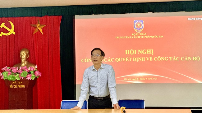 Tại Hội nghị, thay mặt Chi ủy và Lãnh đạo Trung tâm, đồng chí Nguyễn Văn Bốn - Bí thư Chi bộ, Giám đốc Trung tâm đã trao một số Quyết định về luôn chuyển, điều động, bổ nhiệm đối với viên chức lãnh đạo, quản lý của Trung tâm. Theo đó, đồng chí Phạm Hùng Ngọc Dũng - Trưởng Phòng Hành chính - Tổng hợp được luân chuyển và bổ nhiệm chức vụ Trưởng phòng Dữ liệu lý lịch tư pháp; đồng chí Nguyễn Văn Thắng - Trưởng phòng Tiếp nhận và xử lý thông tin được điều động và bổ nhiệm giữ chức vụ Trưởng phòng Hành chính – Tổng hợp; đồng chí Nguyễn Thị Thu Hằng -Trưởng phòng Phòng Dữ liệu lý lịch tư pháp được điều động và bổ nhiệm giữ chức vụ Trưởng phòng Tiếp nhận và xử lý thông tin.
