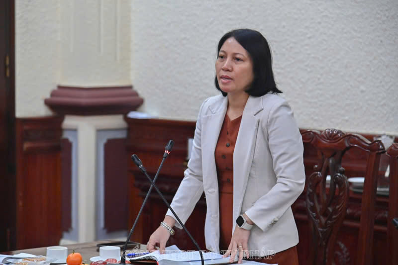 Đồng chí Đỗ Thị Thúy Lan, Phó Giám đốc Trung tâm Lý lịch tư pháp quốc gia phát biểu tại Hội nghị.