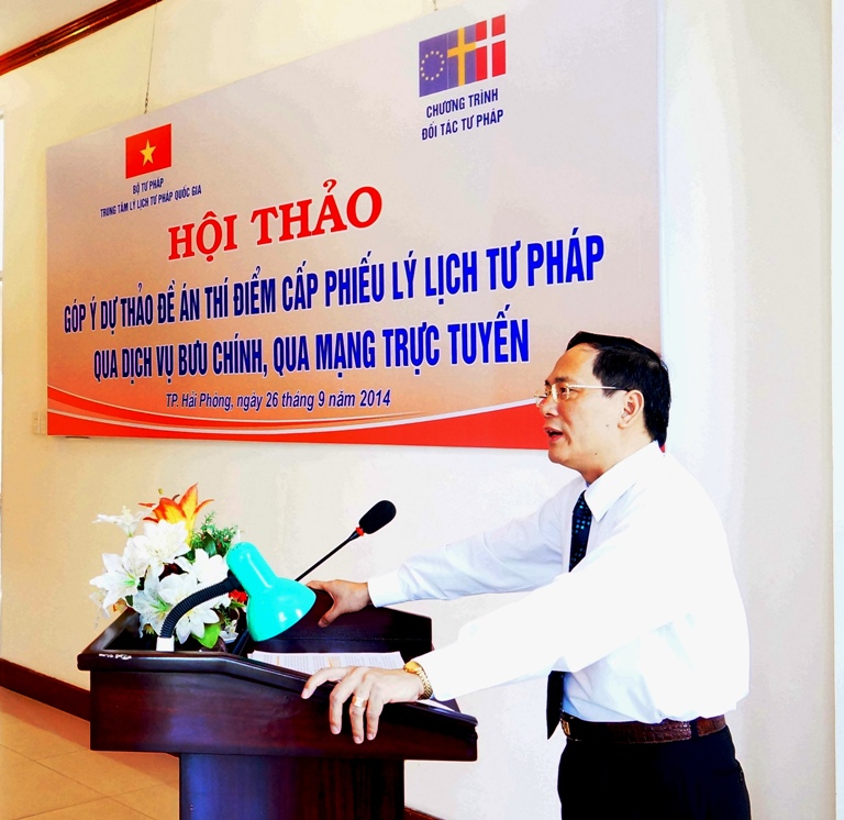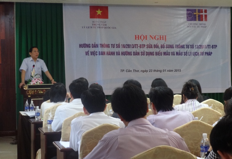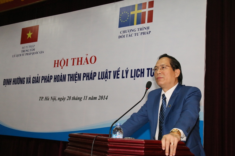 Trong khuôn khổ Chương trình “Đối tác tư pháp” (JPP) do Liên minh châu Âu, Đan Mạch và Thụy Điển tài trợ, theo kế hoạch công tác năm 2014, ngày 28 tháng 11 năm 2014, tại thành phố Hà Nội, Bộ Tư pháp đã tổ chức Hội thảo “Định hướng và giải pháp hoàn thiện pháp luật về lý lịch tư pháp”. Tham dự Hội thảo có Tiến sỹ Phạm Quý Tỵ - Nguyên Thứ trưởng Bộ Tư pháp. Về phía các cơ quan Trung ương, có đại diện của Ban Chỉ đạo Cải cách Tư pháp Trung ương, Văn phòng Quốc hội, Tòa án nhân dân tối cao, Viện Kiểm sát nhân dân tối cao, Văn phòng Chính phủ, Bộ Công an, Bộ Quốc phòng, Bộ Thông tin – Truyền thông, một số đơn vị thuộc Bộ Tư pháp như Tổng cục Thi hành án dân sự, Cục Kiểm soát thủ tục Hành chính, Cục Công nghệ thông tin, Cục Quản lý Xử lý vi phạm hành chính và Theo dõi Thi hành pháp luật, Vụ Tổ chức cán bộ, Viện Khoa học Pháp lý, Học viện Tư pháp. Về phía các cơ quan địa phương, có đại diện của Sở Tư pháp một số tỉnh, thành phố như Hà Nội, Thành phố Hồ Chí Minh, Hải Phòng, Đà Nẵng, Vĩnh Phúc, Hà Tĩnh…; Cục Thi hành án dân sự Thành phố Hà Nội, Công an Thành phố Hà Nội, Trại giam Thanh Xuân. Được sự ủy quyền của Thứ trưởng Nguyễn Thúy Hiền, đồng chí Hoàng Quốc Hùng – Phó Giám đốc Phụ trách Trung tâm Lý lịch tư pháp quốc gia đã chủ trì Hội thảo.