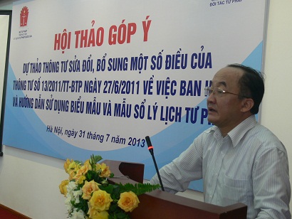 Trong khuôn khổ Chương trình hợp tác “Đối thoại Nhà nước Pháp quyền giữa Bộ Tư pháp Cộng hòa Xã hội chủ nghĩa Việt Nam và Bộ Tư pháp Cộng hòa Liên bang Đức” giai đoạn 2012-2014, tiếp theo Hội nghị tập huấn nghiệp vụ lý lịch tư pháp khu vực phía Nam (32 tỉnh, thành từ Đà Nẵng trở vào) được tổ chức tại Thành phố Hồ Chí Minh ngày 04, 05/4/2013 vừa qua, ngày 11, 12/4/2013, Bộ Tư pháp tiếp tục tổ chức Hội nghị tập huấn nghiệp vụ lý lịch tư pháp dành cho khu vực phía Bắc gồm học viên là những công chức, viên chức đang trực tiếp thực thi các công việc về lý lịch tư pháp của 31 tỉnh, thành từ Thừa Thiên Huế trở ra.
